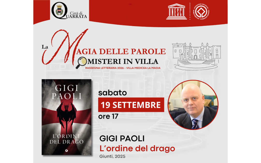 All’interno della rassegna “La Magia delle Parole. Misteri in villa”, l’autore Gigi Paoli presenta il suo romanzo L’ordine del drago (Giunti, 2025) nelle Scuderie della Villa Medicea La Magia sabato 19 settembre 2026 alle ore 17.