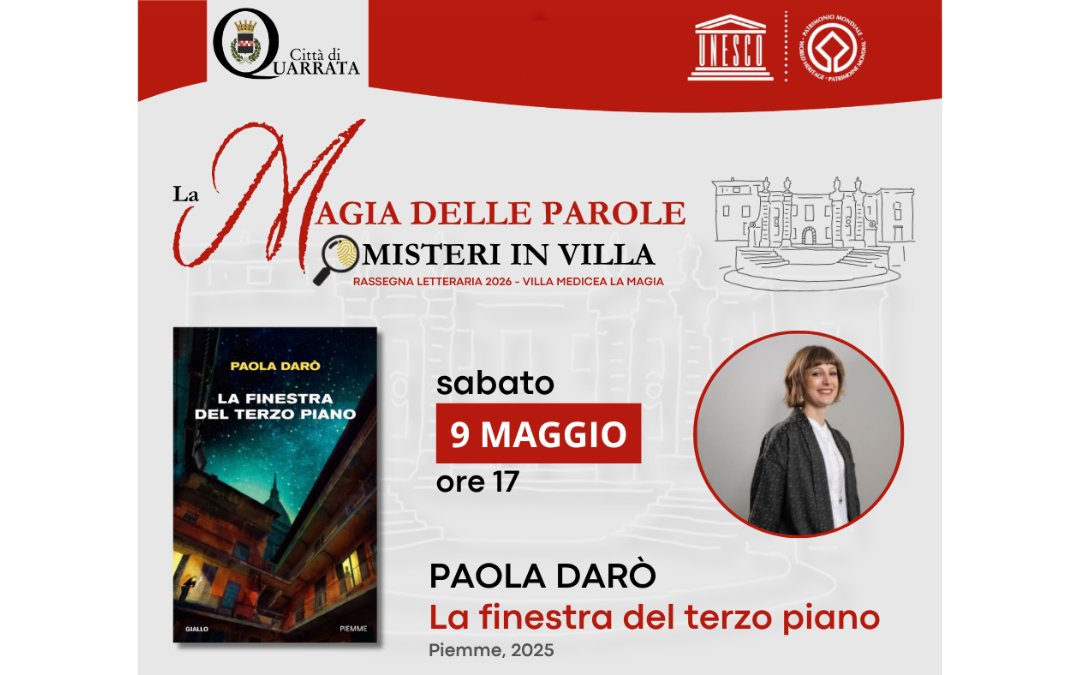 All’interno della rassegna “La Magia delle Parole. Misteri in villa”, l’autrice Paola Darò presenta il suo romanzo “La finestra del terzo piano” (Piemme, 2025) nelle Scuderie della Villa Medicea La Magia sabato 9 maggio 2026 alle ore 17.